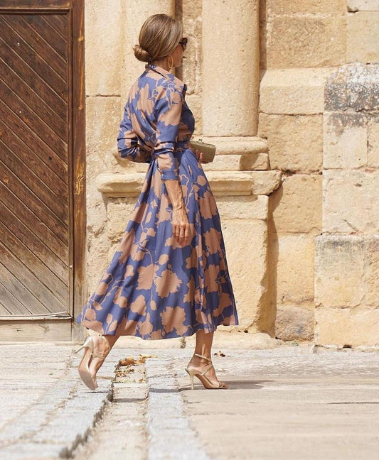 Chic Floral Print Long Sleeve V-Neck Maxi Dress