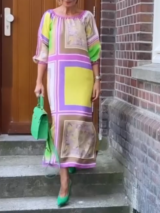 Colorful Print V-neck Loose Dress