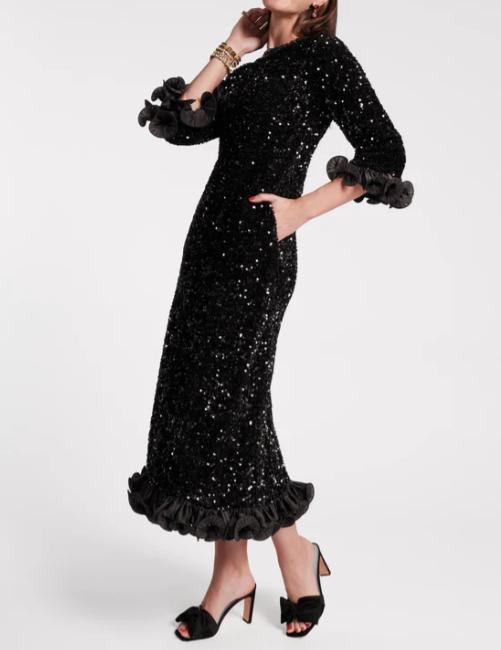Elastic Sequin Maxi Party Dress