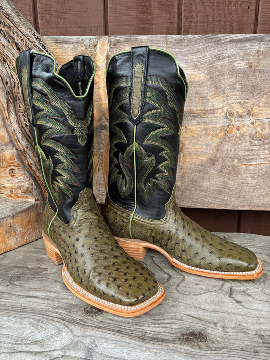 Green Ostrich Leather Print Cowboy Boots