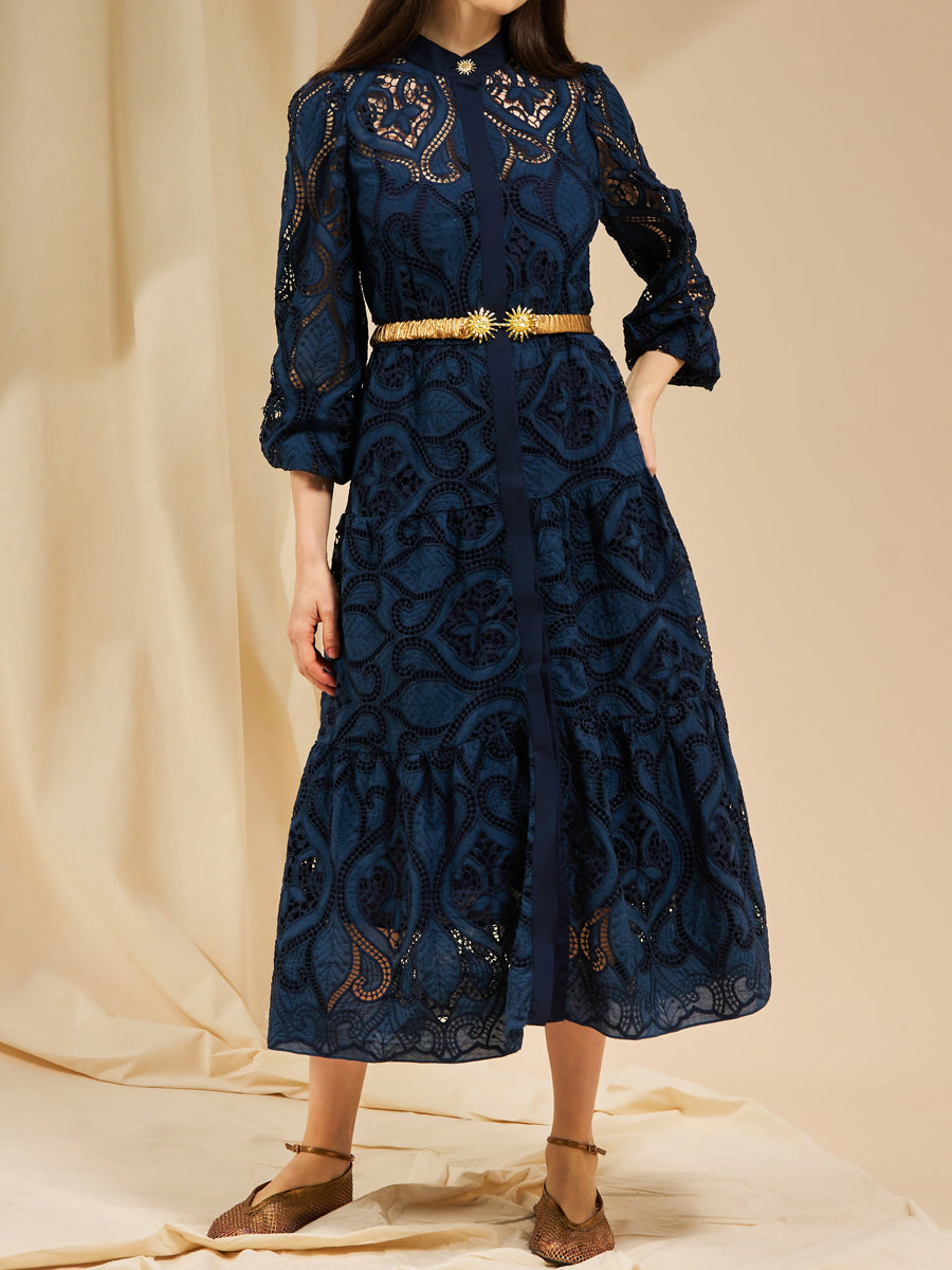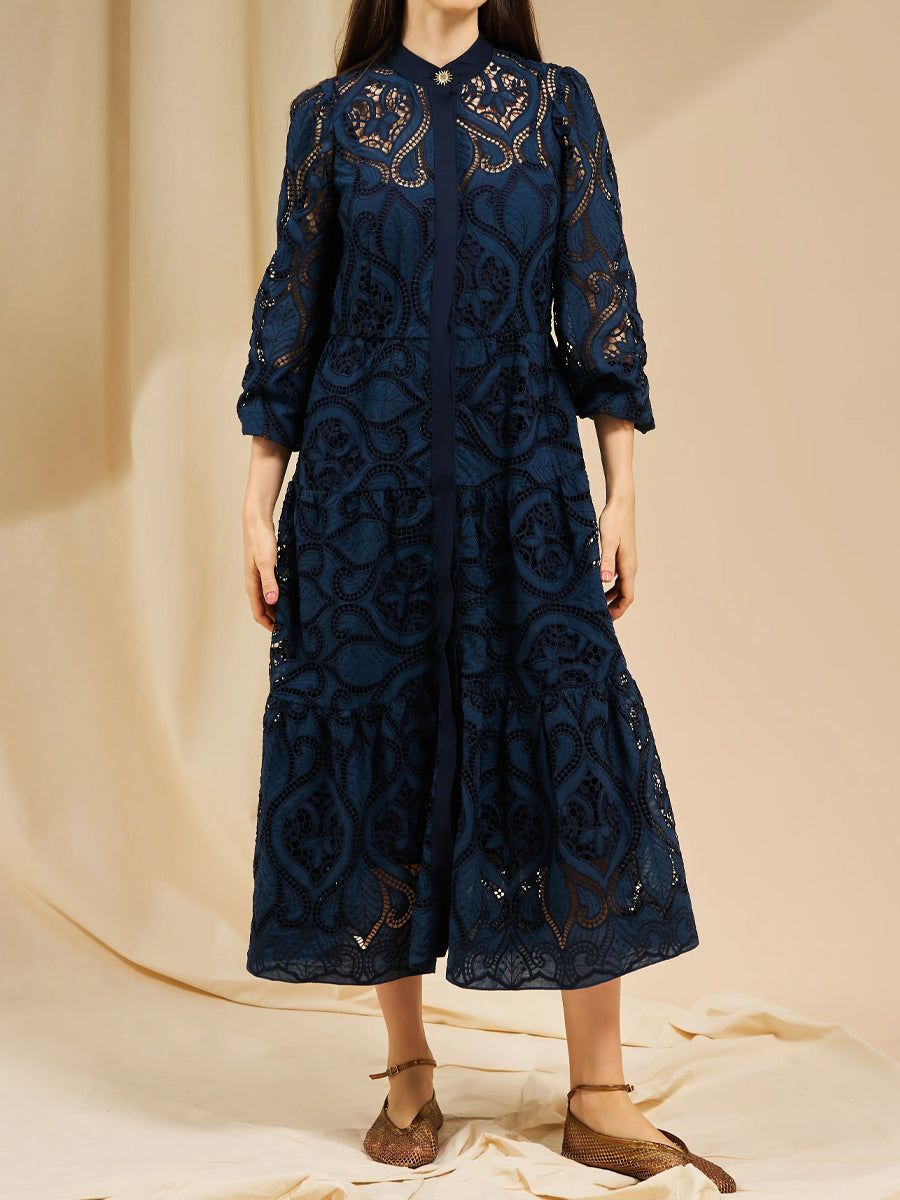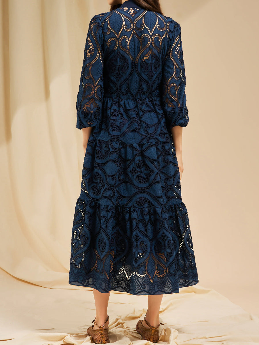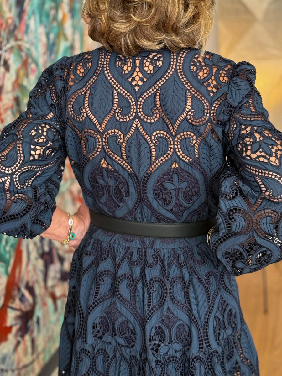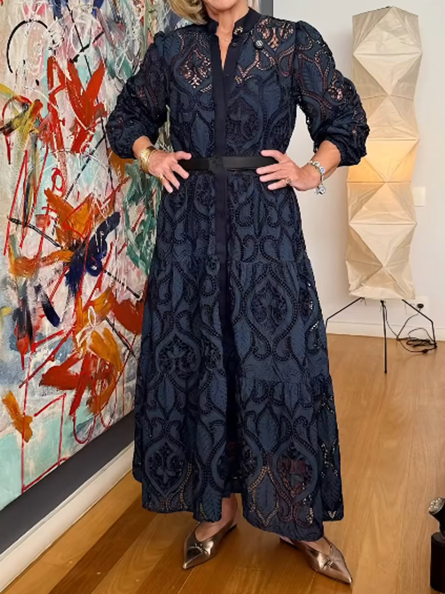 This dress features a lace design and elegant long sleeves, making it perfect for any occasion. With its versatile and timeless style, it offers a comfortable and chic look that can be dressed up or down. Made from high-quality materials, this dress is a must-have for any fashion-forward wardrobe.